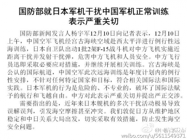 不會是又被鎖定無法擺脫放干擾彈吧?據大陸網友消息,今天上午,日本空中自衛隊沖繩那霸基地第9航空團正在進行航空祭(開放日表演)活動,突然有10架F15戰機緊急掛彈起飛,數量佔該航空團全部兵力的四分之一http://slide.mil.news.sina.com.cn/k/slide_8_35313_47214.html?img=535360#p=5中国機の東シナ海における飛行についてhttp://www.mod.go.jp/js/Press/press2016/press_pdf/p20161210_01.pdf近排自慰隊拍的照片越來越差,這次直頭要用舊照片充數可能現在連拍照的時間都沒有....保命第一,拍照第二