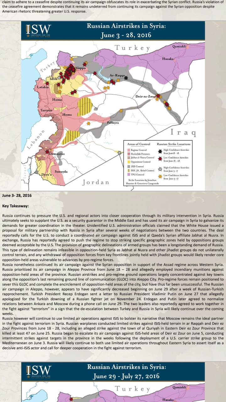 你說的ISW提到每個禮拜都會更新資料,我隨便點最近一篇就是以「俄運聲稱要打al-qaeda與ISIS」作為開頭,然後附上「俄軍在搞什麼鬼?」的轟炸記錄圖