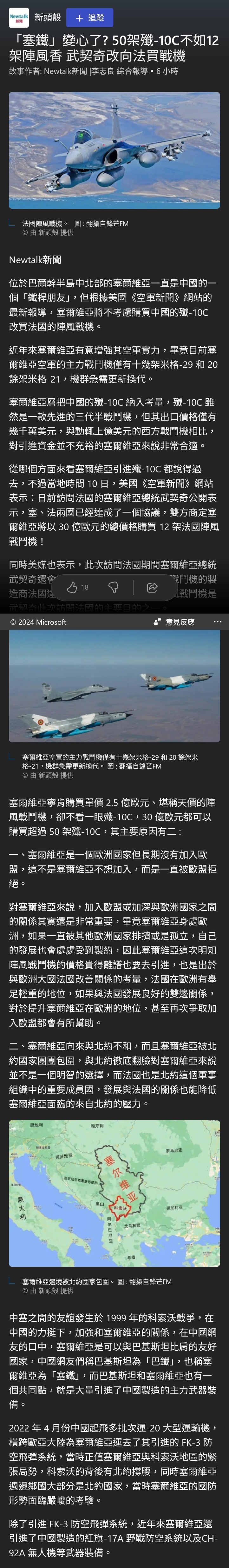 rivegauche1979 wrote:連塞爾維亞都不要消聾...(恕刪) 基本上 以目前"笑龍" J-10這種外銷表現..連第三世界國家都沒怎敢收只要有點良知 臉皮沒有厚到核彈打不穿的粉紅是吹不出這玩意兒有多強多猛的...除了中低階無人機外....口國現在所有吹很大的"新銳武器"戰機 軍艦 飛彈等....別說實戰驗證能力 連拿得出手的銷售成績都沒有...