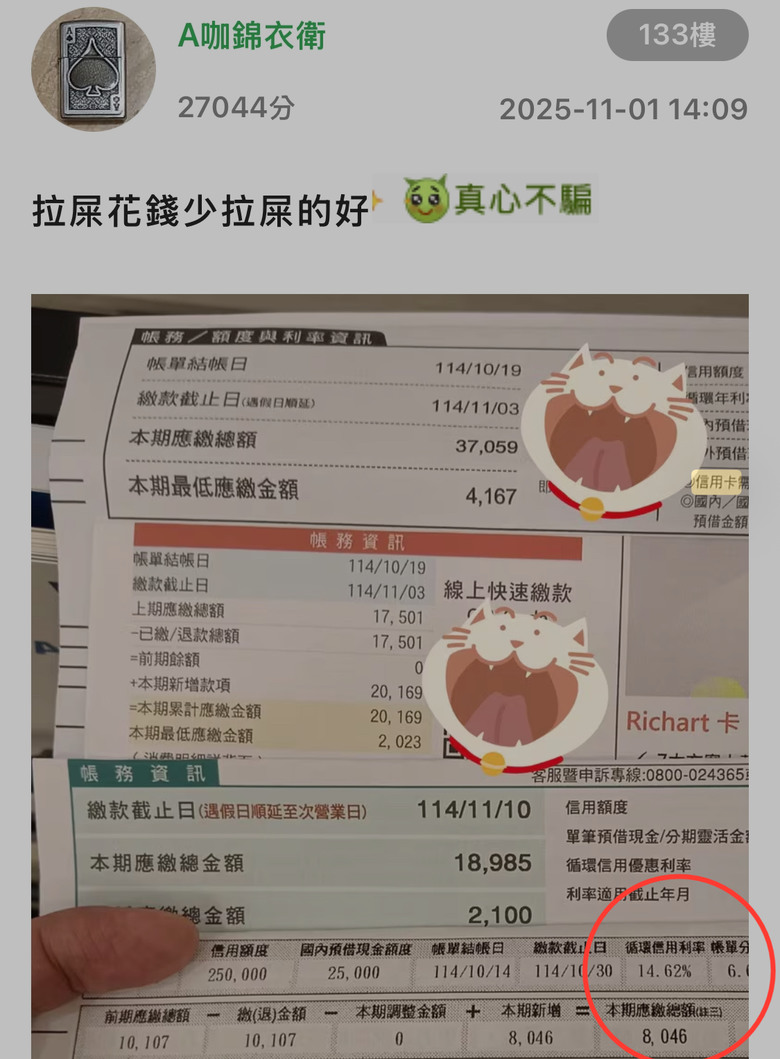 A咖錦衣衛 wrote:讓大家看看網路如何使人瘋狂,連幻想都跑出來,而且要其他人跟他一起幻想,網路上的你也是已經瘋了嗎?你就是個造謠者造假者 14.62% 不是你的網路貼圖?退休國安不是你自稱身份?警專學生不是你自稱身份?富二代不是你自己呈述?外國女人買珠寶不是你自己貼文?家裡母雞不是你自稱?捐1200想要有福報不是你說的?說出國跟孩子拿錢的不是你?影射我小三通的不是你?影射我老婆跑了的不是你?哪一件是我造謠的?我馬上01封號!你敢一樣在01承諾嗎?