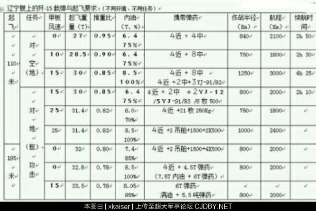 在看看J-15起飛圖表吧更證明J-15有嚴重缺陷不只是戰機發起攻擊有數量上的差異問題全滿武裝航程更遠低於F-18打擊範圍要一邊迎擊美軍戰機攻擊另一面打擊美軍航母是不可能達成的也就是打擊一但失敗將沒有航母可以降落飛機跟當年日軍自殺攻擊差不多了