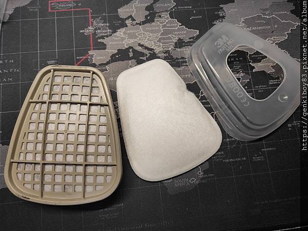 一般來說七件組裝起來其實還是滿重的,但如果是對於沒有化學氣體危害的環境防護,可以直接選擇 7093 濾棉匣即可,裡面的濾棉是類似清淨機的 HEPA 皺折結構,使用壽命長而且呼吸阻抗低,通氣效果更好,符合美規 NIOSH P100 等級,可過濾非油性及油性懸浮微粒,過濾效率可達到 99.97%,簡單說就是比 N95 再更高一些,再加上濾棉是藏在保護蓋內側,進氣也變成從內側縫隙進入,所以可以減少濾材很多非必要的觸碰跟污染,不使用時將外殼擦拭收藏即可