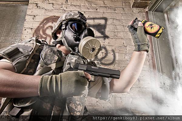 當時會買也是因為要拿來當拍照道具使用,M15 防毒面具是以色列從 70 年代左右開始採用,以德國 M65 面具作為設計參考,而波灣危機時因為中東情勢緊張,一般家庭也會配發民用版本的 4A1 防毒面具,有一陣子因為剩餘軍需物資定期汰換,所以 eBay 上一堆全新庫存品,我手上的這具也是當時買的。