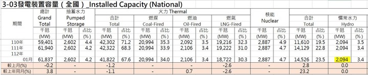 sunhm wrote:我在這樓看到的是 268.2MW 呢?https://www.mobile01.com/topicdetail.php?f=638&t=6755251#87050933 那個是實際發電量水力的總設備容量要看該網頁下面的資料另外能源局的統計如下