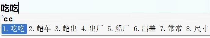 yuyang810402 wrote:打“吃”如果用拼音,只要打C或者“CH”就出来了...(恕刪) 我將我的自然輸入法軟體轉成漢語輸入法後。如果只打「c」或「c」+「h」,不打「空格鍵」,無法出現吃這個字。如果打「c」+「空格鍵」,出現「疵」這個中文字如果打「c」+「h」+「空格鍵」,則出現「吃」這個中文字。如果打「c」+「h」+「i」+「空格鍵」,也出現「吃」這個中文字。另外,請問吃漢語拼音chī的「i」要不要發音?