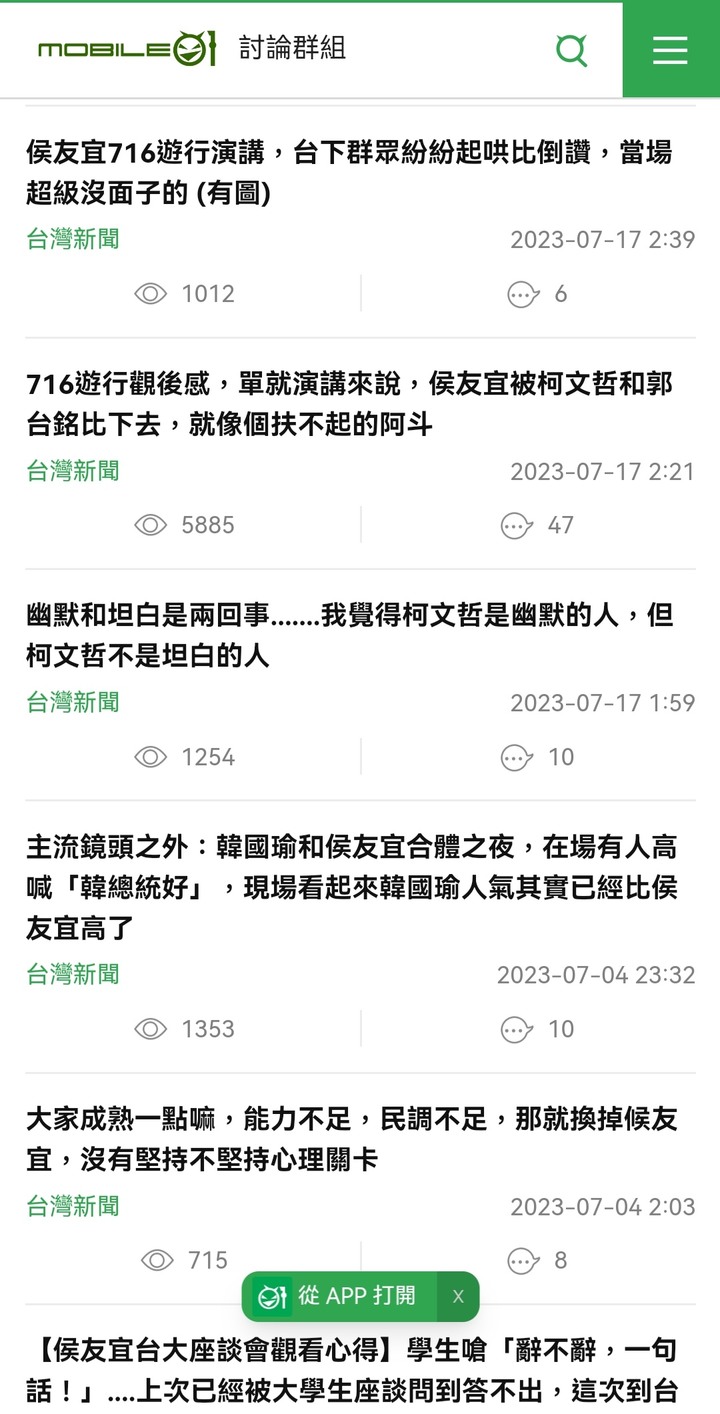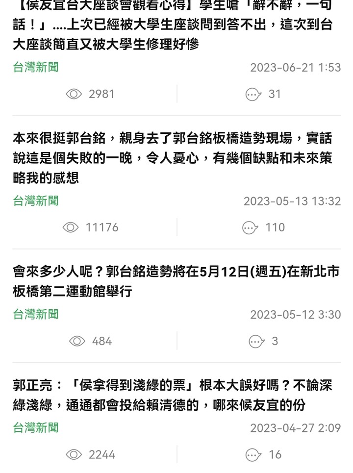 Brian 168 wrote:呵呵 Brian 168 老兄侯友宜的座談會影片你看過沒,我從頭看到尾。侯友宜當晚在台大的那種表現,是任何一個藍營的人看了都會生氣的表現。口齒不清,不知所云,沒有準備。在台大被學生電那麼慘看了都很可憐。這樣子,難道不應該指責一下嗎?我希望侯友宜真的做好準備再來上戰場(選戰)。