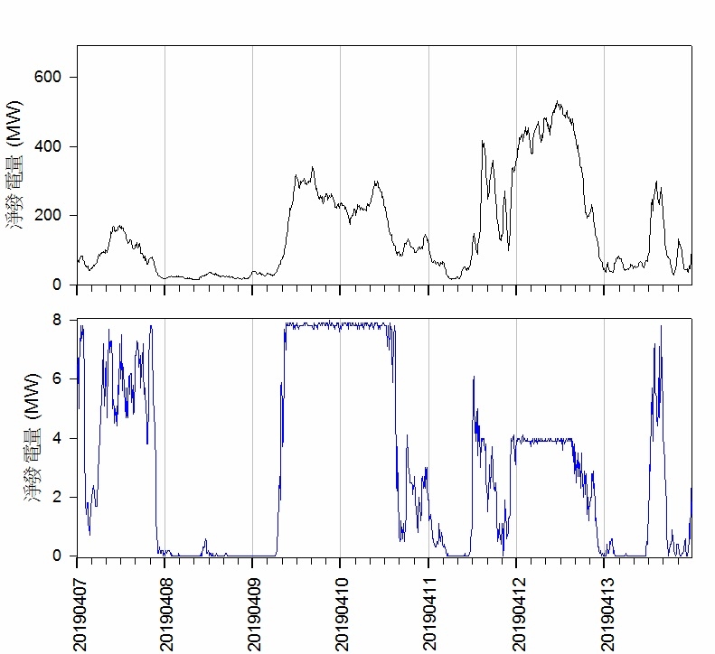 20190407 ~ 20190413海洋竹南風電總發電量(上)與海洋竹南(下)的比較[data] 20190407 20190408 20190409 20190410 20190411 20190412 20190413