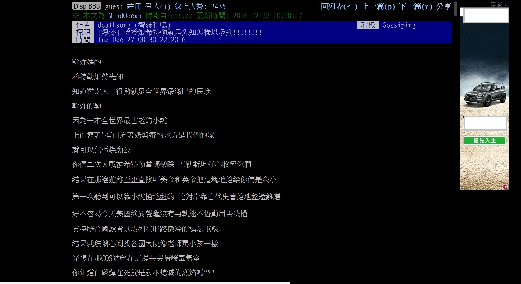 納粹不會搞大屠殺,歧視才會
