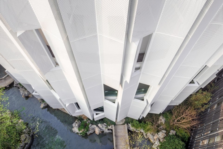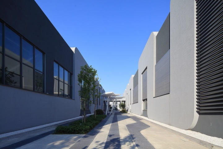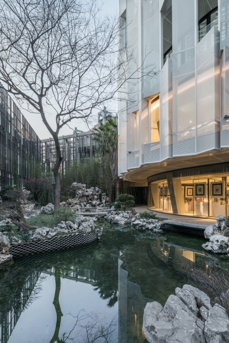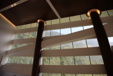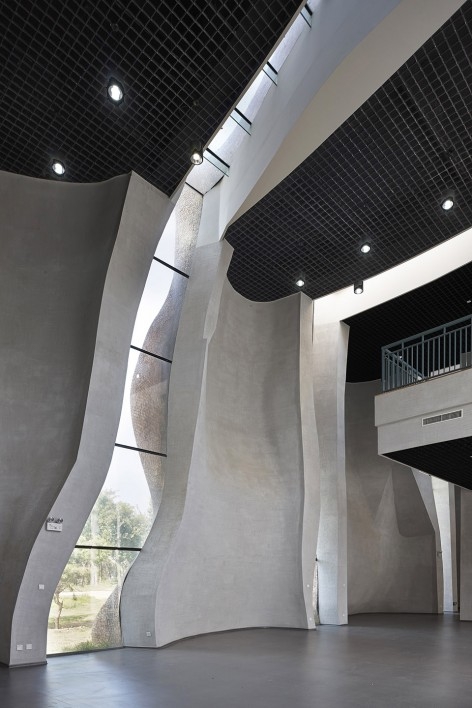 東莊-西域建築館位於距烏魯木齊市30多公裏南山的托裏鄉之前是六十多年前蓋的荒蕪糧店。為了保護草木不受損害,建築在原有基地上搭建,坐北望城、朝南近山。遠遠望去像是山上滾下來壹塊灰白石頭,既不礙眼也不張狂,安妥而立於藍天烈日、沙漠戈壁、亞歐腹地的曠瀚地域,全然沒有城市建築的炫麗與秩序、教化。