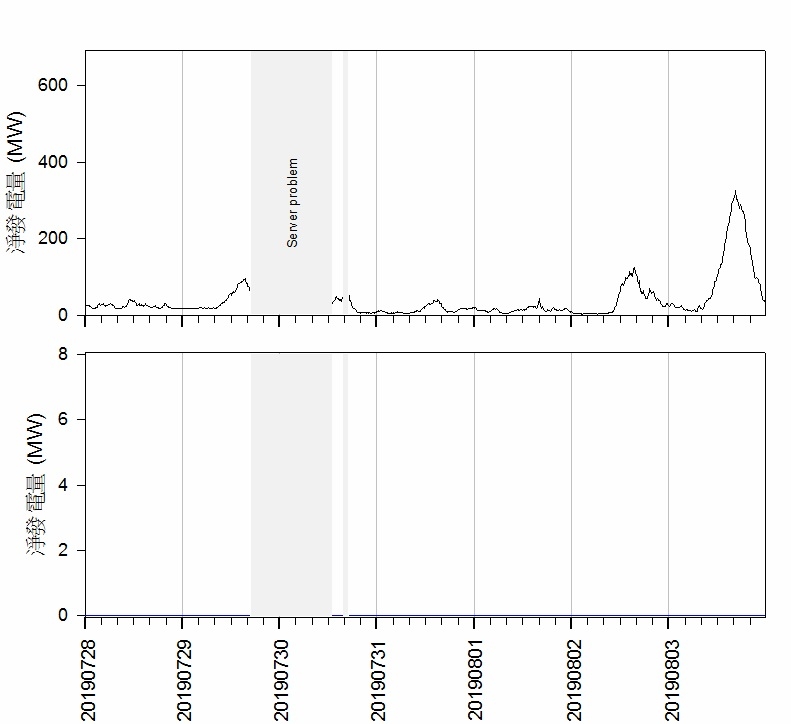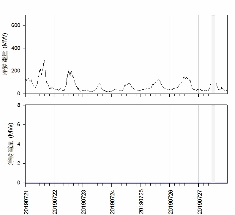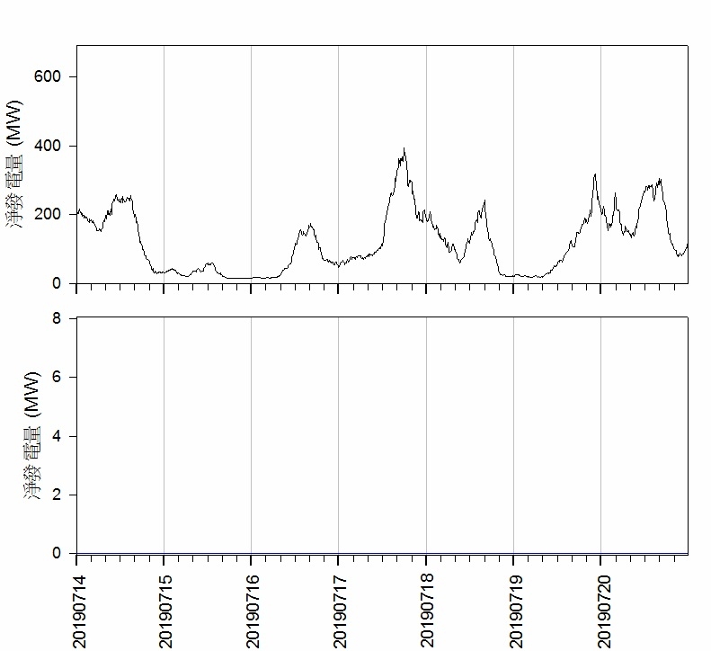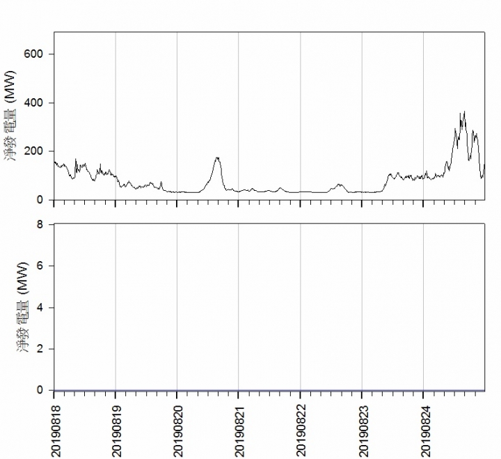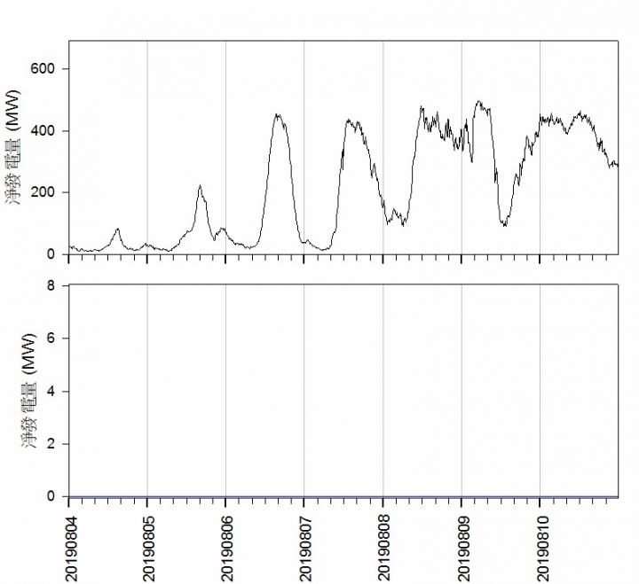 20190811 ~ 20190817海洋竹南風電總發電量(上)與海洋竹南(下)的比較[data] 20190811 20190812 20190813 20190814 20190815 20190816 20190817PS: 颱風引進西南氣流