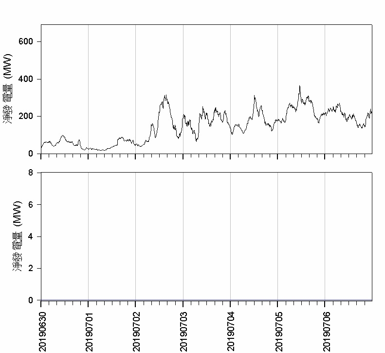 20190630 ~ 20190706海洋竹南風電總發電量(上)與海洋竹南(下)的比較[data] 20190630 20190701 20190702 20190703 20190704 20190705 20190706