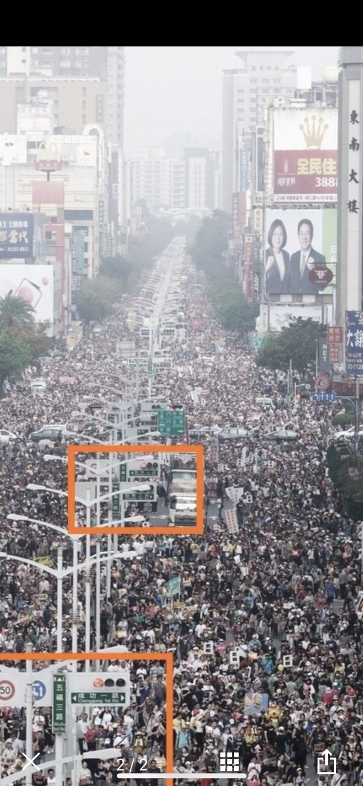 笑死人....一看就知道是P圖的焦距把兩路標拉近但不會跳過兩路標間的人好嗎??如果要壓縮也會把兩路標間的人一起壓縮兩路標多遠??少說有30公尺圖裡面的兩路標間縱向的人有多少人??清清楚楚算得出來,大概只有6-7排人要不是兩路標間的人只有6-7排人(30多公尺只有6-7排人??也太稀疏了),就是P圖的人很懶,沒把人多P一點.....