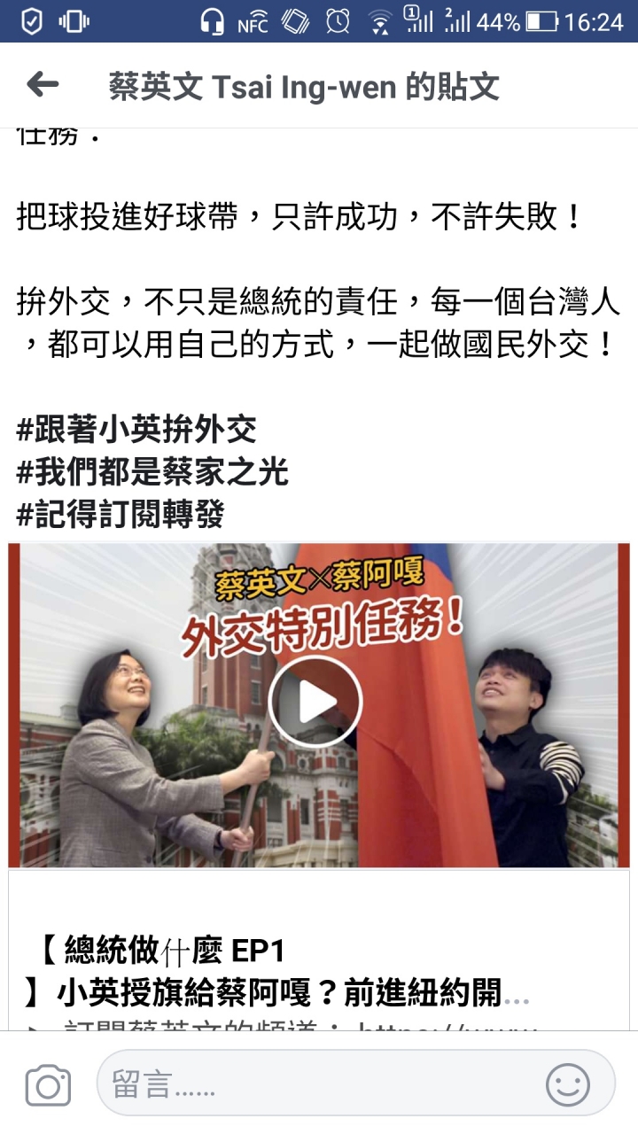 比較期待…… 她在台或是出國訪友邦時高舉"台灣國的國旗"的即可!!