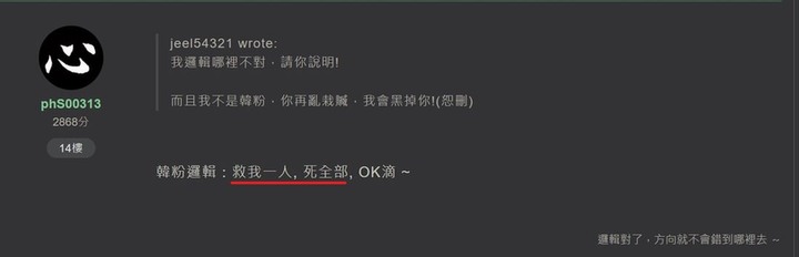 phS00313 wrote:感謝驗證 ~(恕刪) 你的智商才太低了,我要講的是:我人現在在台灣,那些同胞回台灣是應該的,所以因為那些同胞回來我被感染了,我也無話可說你只會在這邊打嘴炮,我還捐了一些口罩出去了