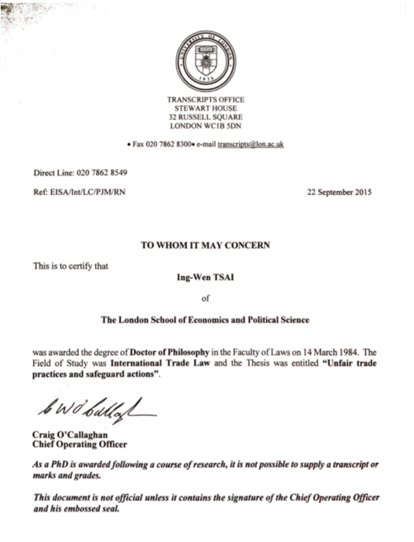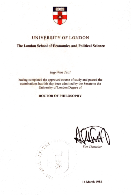 LSE也承認蔡英文是1984博士畢業,要打她沒論文或沒畢業真的很難