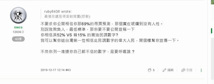 至於這位樓主,我在他樓和他相遇,他po上小英69%的得票率圖表,我也是請教他: