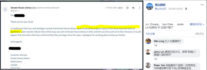之前SHL回覆網路上某人提問時還提到,論文是從口試委員那兒送過來。所以,合起來就是口試委員送交學位辦公室,辦公室才送交圖書館。學生沒有出現在這流程中。