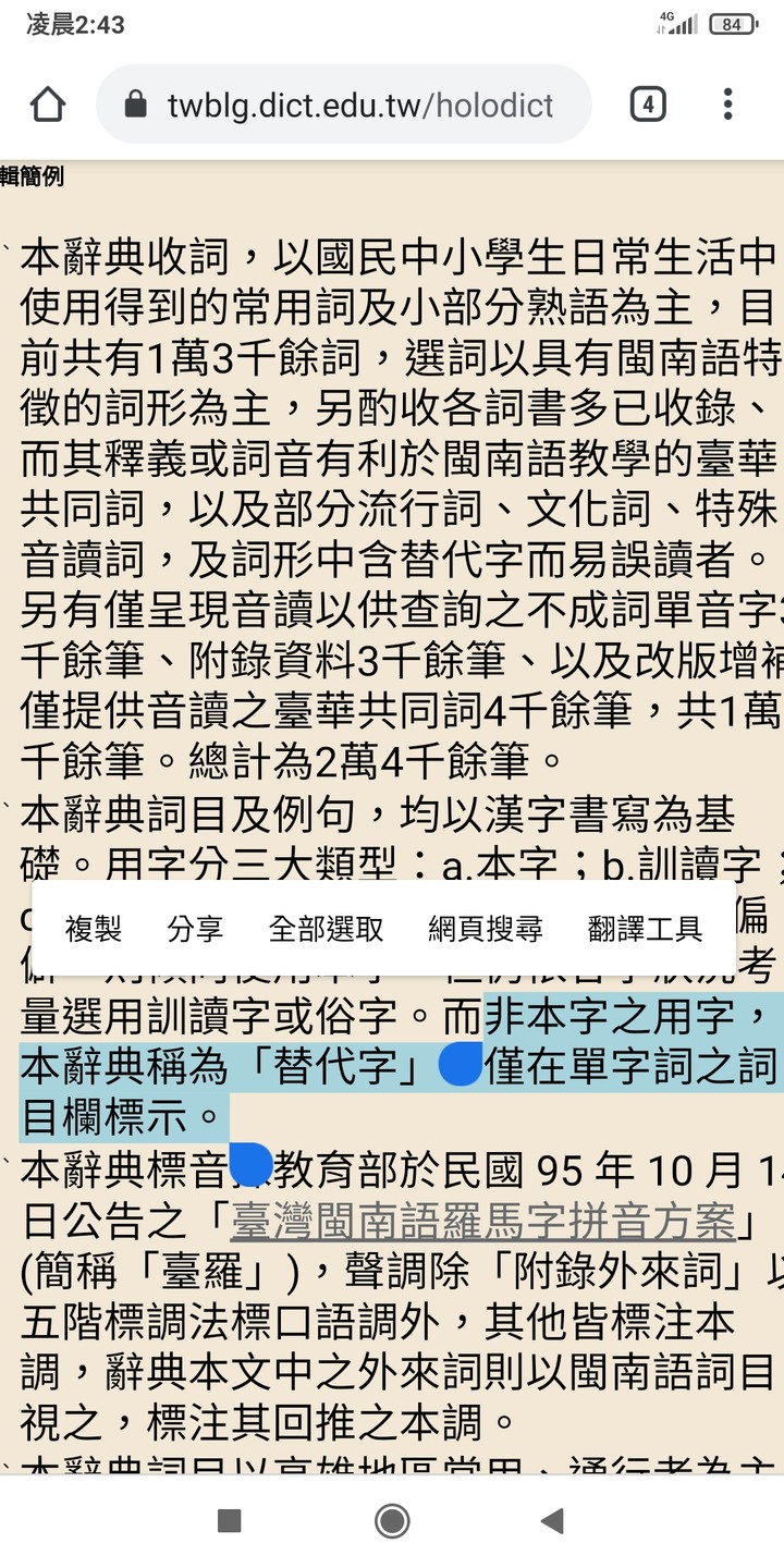呵呵呵...再講下去,眾網友就都要[du lan]了。請看下面幾幅來自「臺灣閩南語辭典」的截圖:注意到了嗎?有些辭項旁邊有個小菱形,中間有個「替」字。也就是說,咱們爭議的字原來都是「替代字」。再來看看辭典的說明:靠--早說嘛!所以,就不要隨隨便便就說每個閩南語的字音都可以找到對應的漢字;更不要隨隨便便就說別人寫錯了。