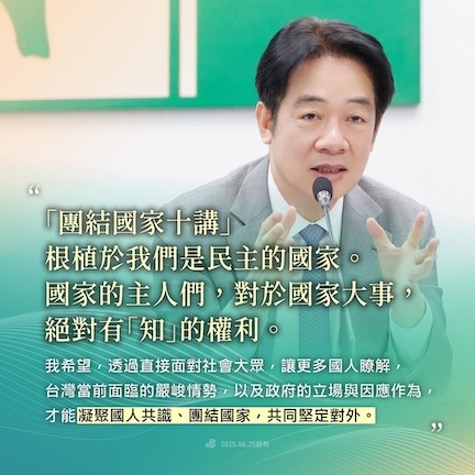 總統賴清德vs.國民黨主席鄭麗文:「(沒有另行宣布台灣獨立的必要。)就直接廢除台獨黨綱。(台灣認同或是中華民國認同,其實都應該彼此尊重。)不要拿中華民國四個字,來玩廉價的政治遊戲。」