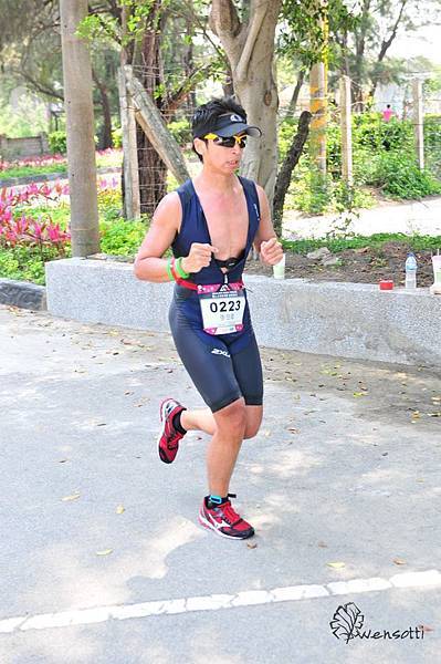 最終項目的路跑共有三圈要繞繞。一開始超乎想像的遮蔽處與微微涼風,著實讓所有在豔陽高照下奮鬥的你我,頓時感受到那份得來不易的酥湖感。通常到這個時候好像都有點半死不活的我,卻有點彈彈跳地往前跑去?