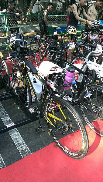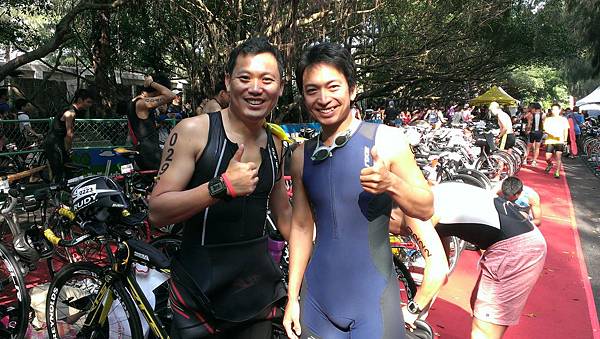 在出T1準備上馬前突然發現隊友神人 Harry大 在一旁呼喊著我名字,當下除了感到不再孤單之外,也因為有了這份加油而稍微忘怯幾分鐘前的大海迷航記。