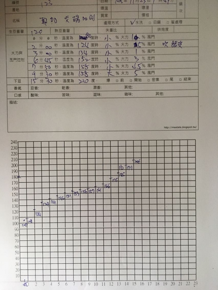 sherlock_C wrote:我有換成數位的喔~是...(恕刪) 4分半到160度,加上一爆密集就下豆,可能導致豆心不夠熟(會有草味嗎?)養個10天再喝看看也不遲… ,有一次我肯亞也烘很淺,一開始沒什麼味道 ,放著不喝一個多禮拜後拿來喝,味道就好很多了……我個人是習慣從回溫開始到150度 7分鐘……其實你有在記錄曲線很好,每一支喝下來感覺寫上去,改變一下手法,例如一爆末下,或者一爆末滑行幾秒下…或者前段時間拉長…等等,你會慢慢找到自己的感覺…火力跟升溫曲線自己要抓好節奏……