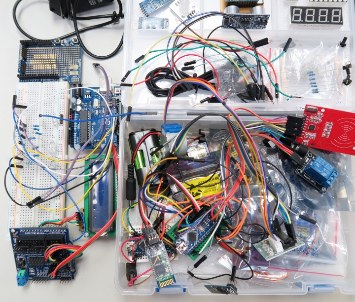 拿中間下面的Nano和藍牙模組,多拿幾條杜邦線,麵包板也可留下,其他還他。附近有人在玩,用問的最快,實際操作5分鐘的事,半小時你就會啦。再來就開啟舊檔、編譯、燒錄完全沒難度。又不是要完全學會才做得出來。不然下載檔案,直接請他燒好,你再買一塊全新的實驗板還他不就好了。