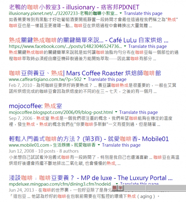 野人野 wrote:咖啡在烘培過程中產生...(恕刪) 「咖啡發酵原理大概跟釀酒差不多,新酒通常有雜染味,香氣較差,口味不協調,帯澀,苦,酸也是常有的事, 所以要在適當的容器內,儲存一段適當的時間,讓酒液內各種成分,通過化學及物理的變化,使酒質達到芬香柔和,這個過程稱為「熟陳」」是「熟成」(aging)還是「熟陳」?要定義一件事,就用對的詞。我是外行不想被不對詞給騙了!「發酵」總不能寫成「伐孝」。