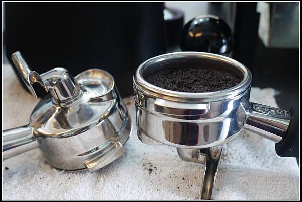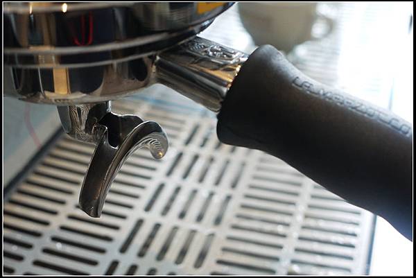 新把手,內部為全不銹鋼,把手為橡皮包覆,把手長度較一般使用的把手長,有符合人因的小折角。濾杯則是VST濾杯,側面有打上STRADA字樣。圖中鎖在沖煮頭上的則是傳統把手,大家可以看的出差異嗎?