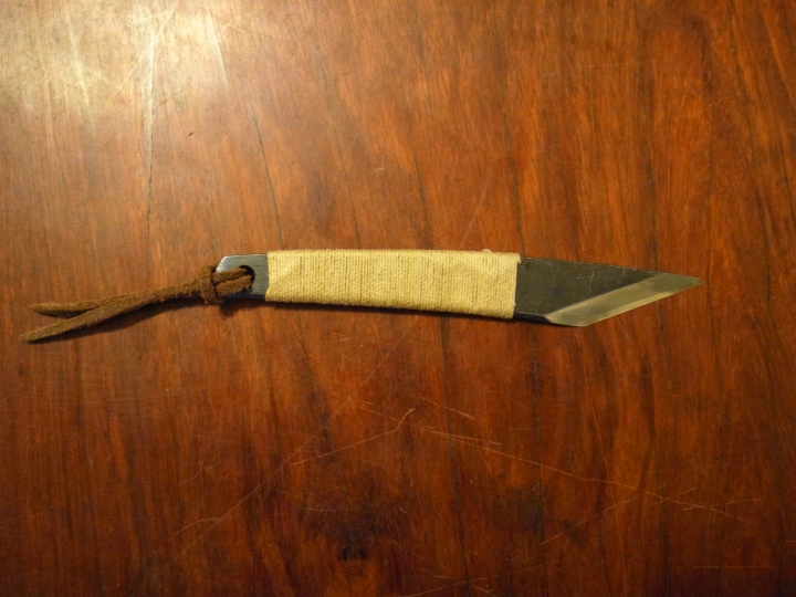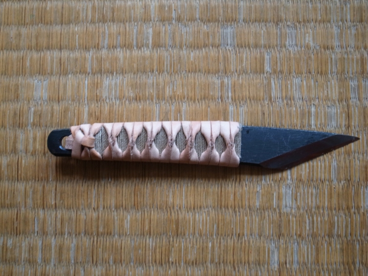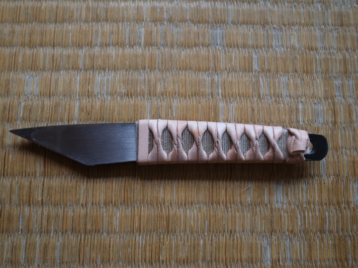 看到ROLLEIMAN大貼出的彰三銅壺,一見傾心,也訂了一把!的確漂亮,唯一美中不足是柄太單調,也不好握!本來想請人包皮,但本地似乎沒人在做手工皮件,乾脆動手自己做!買書買材料,從無到有,也蠻有趣的!第一次編,雖還有改進之處,但還算滿意!