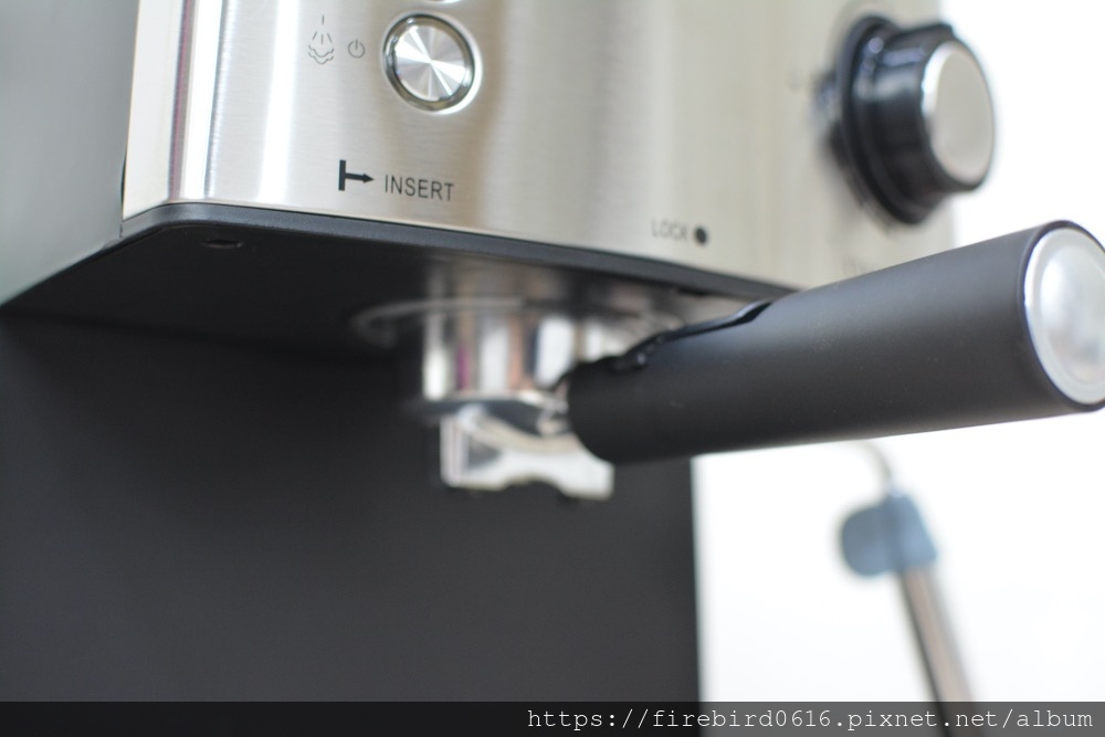 在裝上手柄前記得先按下最上方的按鍵,將咖啡機預熱。