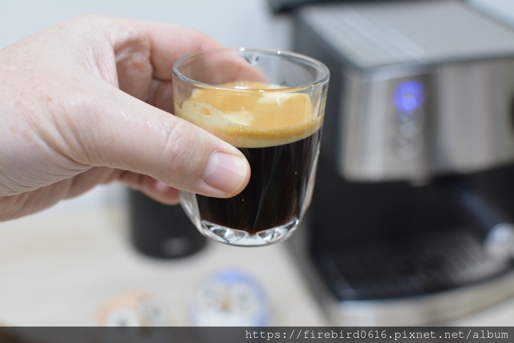 可以感受到來自義大利ULKA水泵的強大系統,以穩度的92度熱水加上20Bar高壓,可以萃取出S&D義式咖啡豆豐富優質的咖啡脂,一開始先出來的便是綿密濃烈的CREMA。