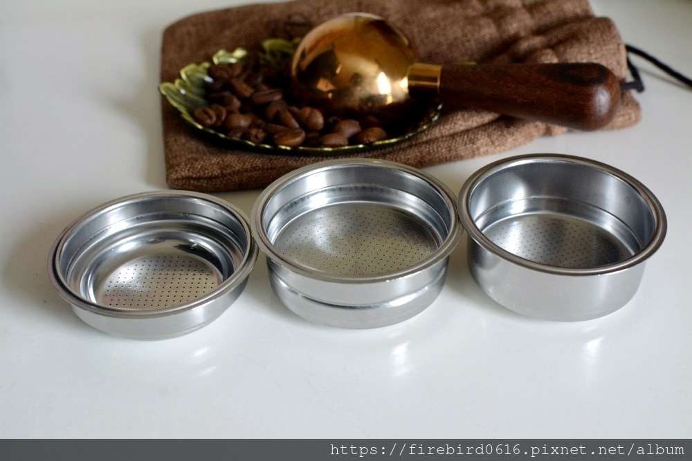配件中有三種不規格的咖啡粉杯,其實是兩種,比較深的是兩杯(LUNGO),其他兩個是標準杯(ESPRESSO)。