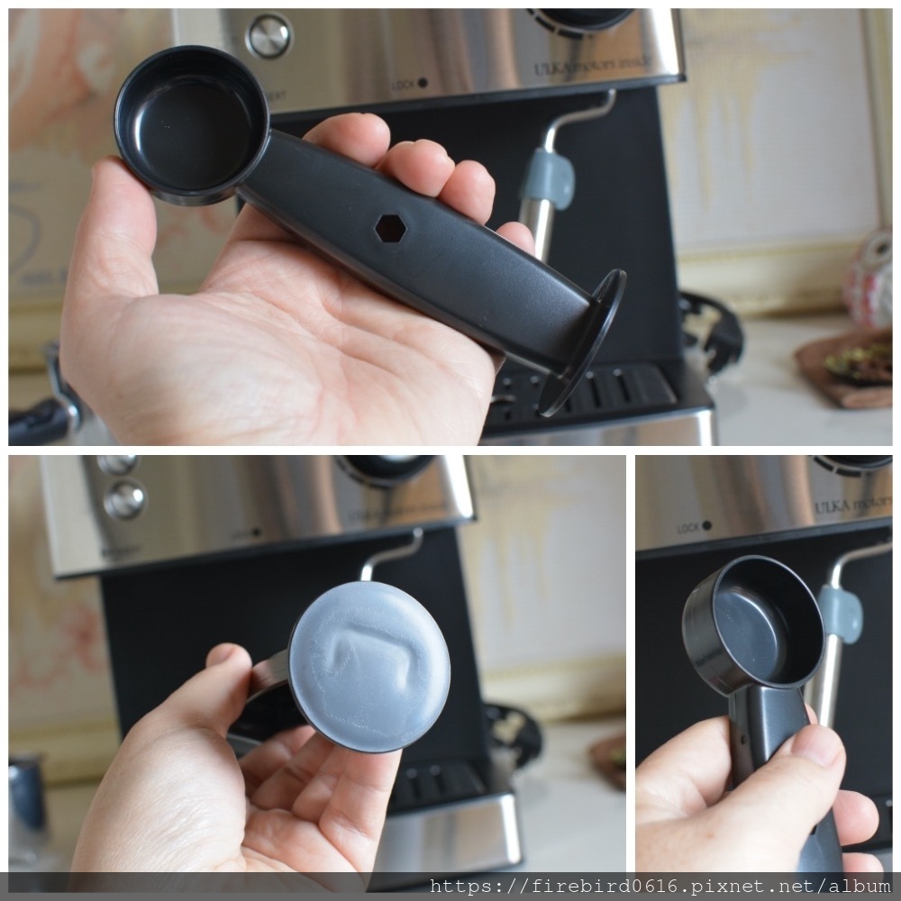 手柄上有個塑膠片,一開始開箱時不知道他的作用,等倒要清咖啡粉渣時,就知道他的神奇妙用。