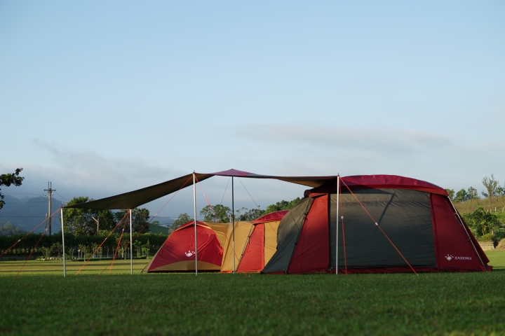 (2)黃昏時,可將帳篷搭天幕下,萬一下雨或溼度高時,天幕下搭帳篷,帳篷內相對乾爽很多。(PS.下雨時,有天幕會舒適很多,寒冷時,客廳帳防寒很重要。)客廳的主要功能:(1)防寒(2)防蚊(3)有隱私。天幕的主要功能::(1)抗陽抗熱(2)抗潮(3)大面積有效遮蔽。