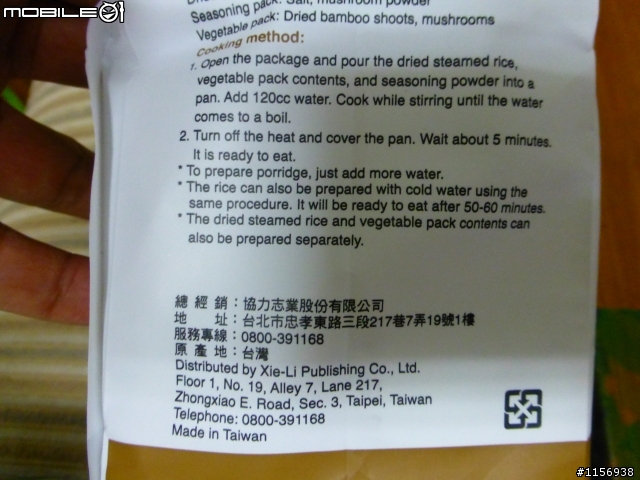 慈濟的救難包是露客吃米飯的懶人包台北市的中正紀念堂內郵局旁有賣。女王的秘方:120cc熱水加上去就是熱騰騰的乾飯。稀飯(米粒完整)加水看個人喜愛。粥(米粒打爛黏稠狀)在加熱水過程中自行用調跟攪拌。chin11072002 wrote:謝謝提醒。工作燈上的...(恕刪)
