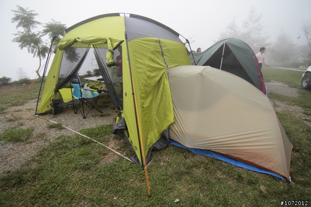 那是一頂迪卡儂的 Family 4.2 的 4人帳裡面有一個小客廳,我們家小朋友稱它是 "蝸牛窩" (有像嗎 ?)這次添加了一頂 5*8 的天幕(第一次搭天幕,粉遜),把它整個給包起來,因為它的尺寸就來到 4.95 *2.25來兩張圖跟大家分享。