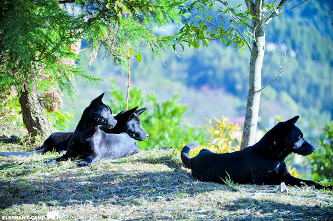 尤命老闆養的3隻黑狗~一早在溫暖的草地上曬太陽,慵懶的感覺似乎也感染了露營的我們