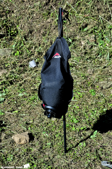 JOE發現焚火架主柱的妙用~掛上水袋真是方便