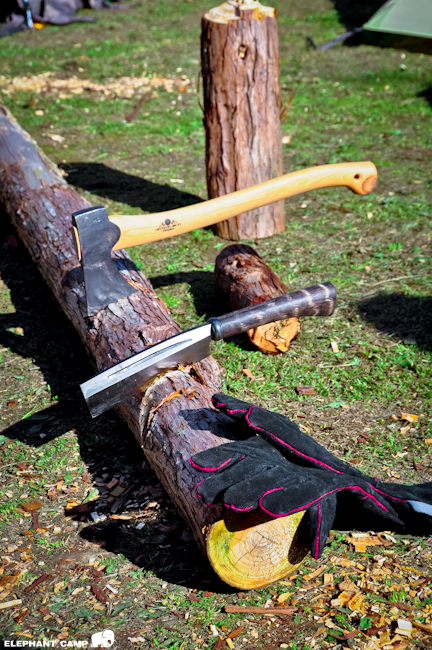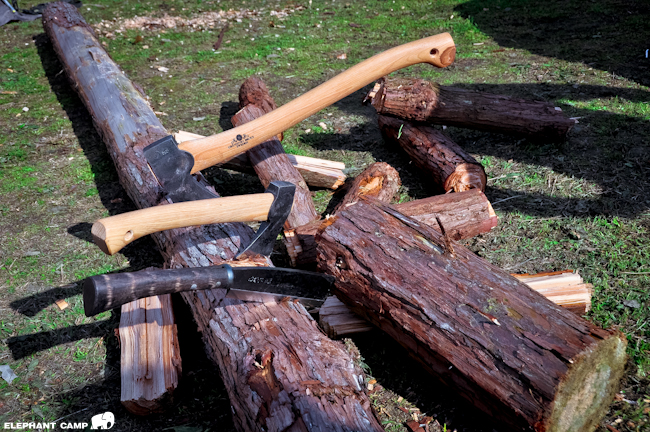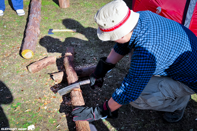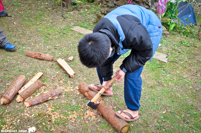 小象小也拿起斧頭練習劈柴,小朋友還是需要有家長在旁指導正確用法以免發生危險~