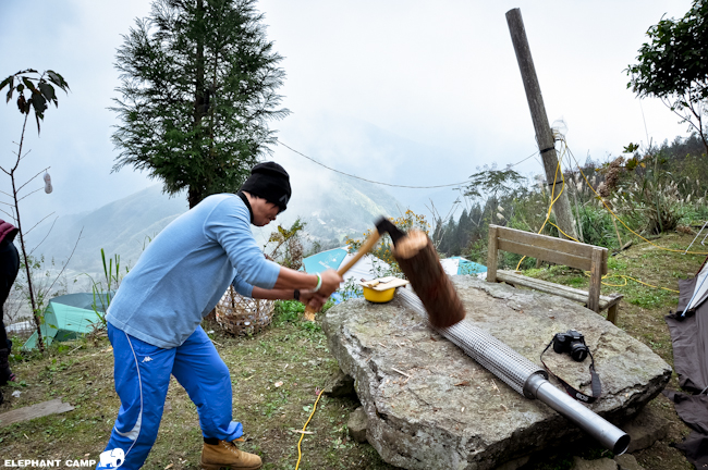 清粥挑戰最粗的杉木,猛力一劈而下,結果....