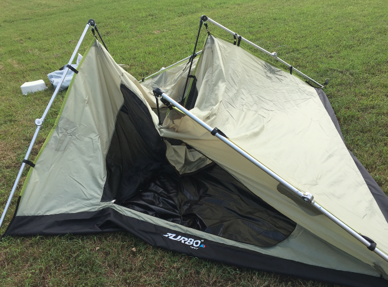 我們大概看一下結構就可以看出他是快速帳, 因為一般的帳是由很多骨架串起來, 然後穿過帳篷布再撐起來的. 而TURBO Tent Lite 270是完全不需要再去做這些組裝.