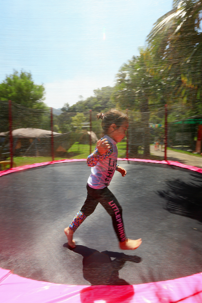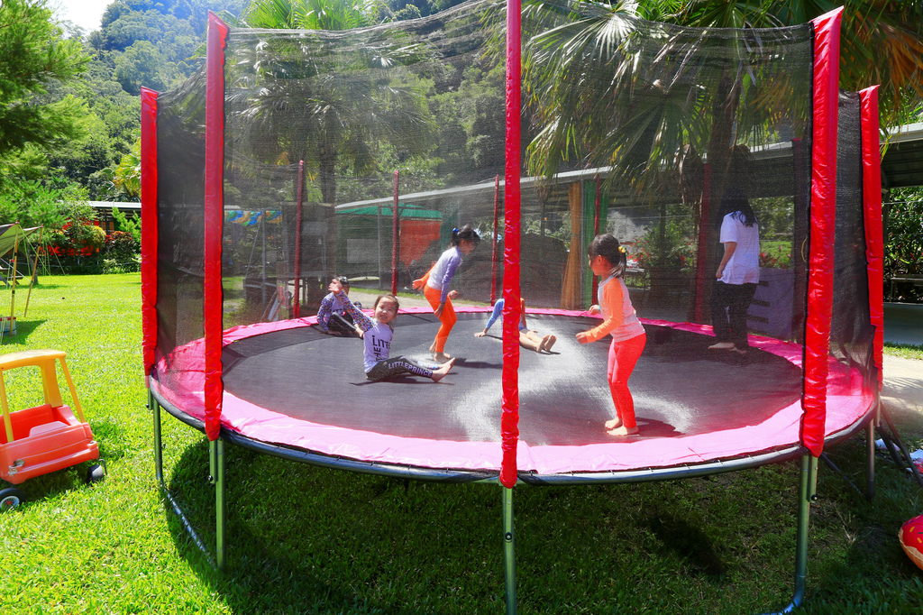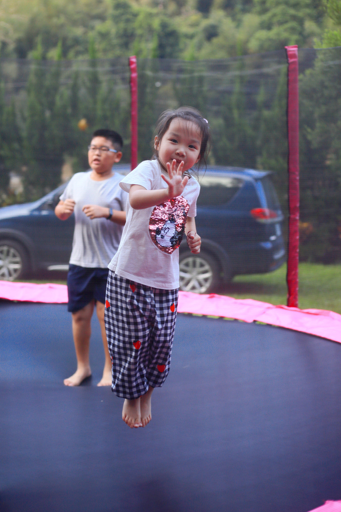 玩到接近中午,直接轉戰跳跳床邊玩邊曬乾XD