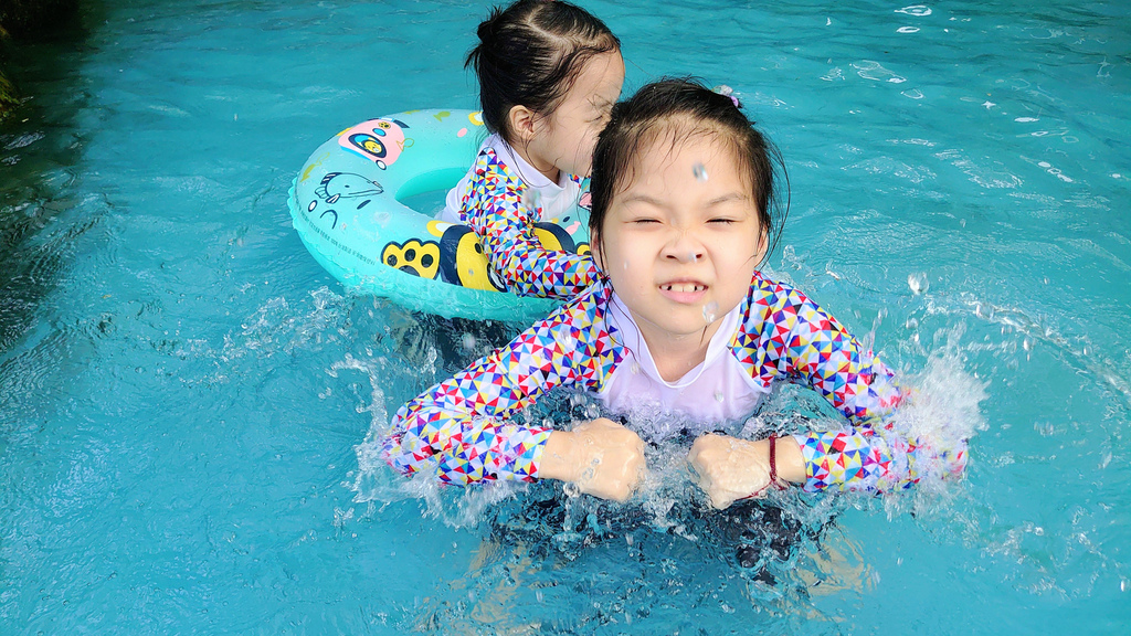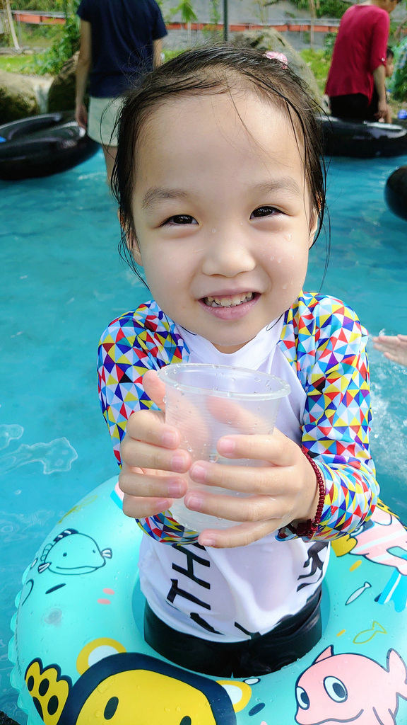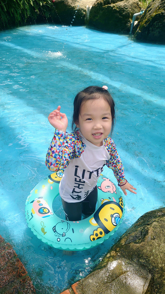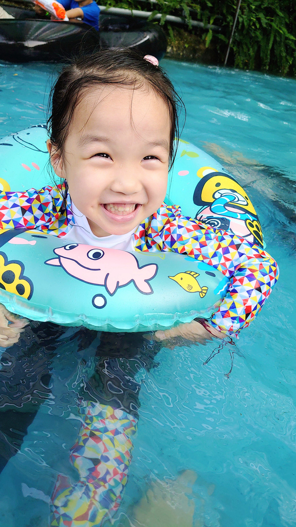 營區提供了幾個泳圈給大家玩,田小玄從頭到尾巴著這個不放