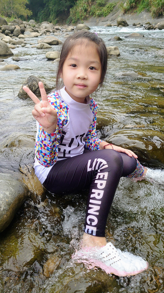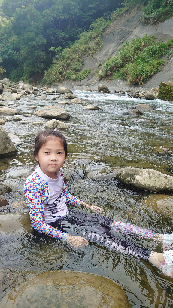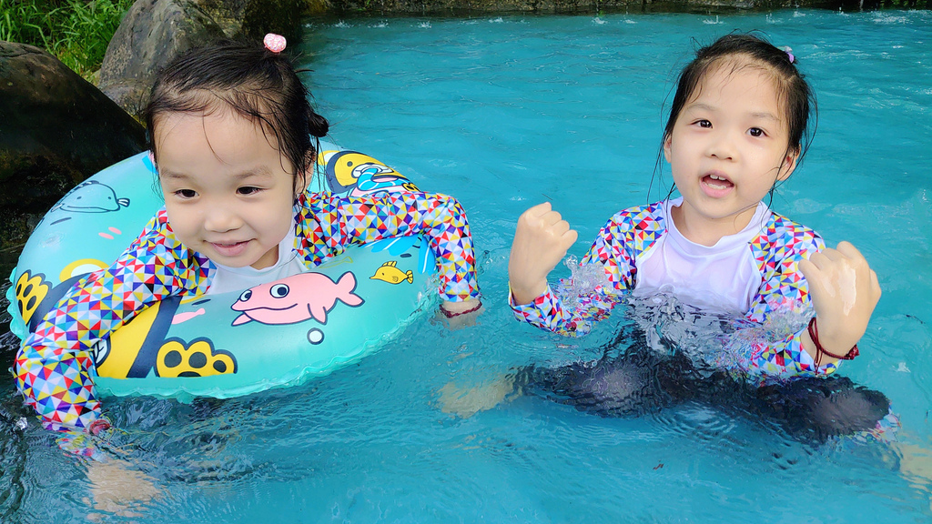 搭完帳篷太熱了,換好泳衣後帶小孩去泡水