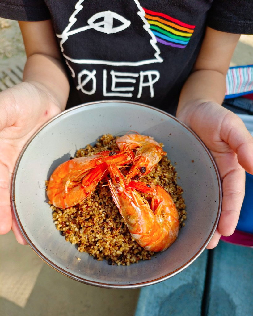 ▼放上又大又新鮮的藍鑽蝦,簡單又營養的主食完成