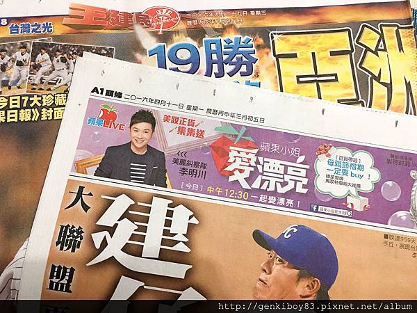 2016年4月11日的蘋果日報頭版再度見到熟悉的老王! 睽違將近三年的大聯盟再登板!