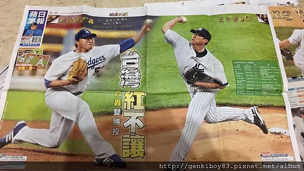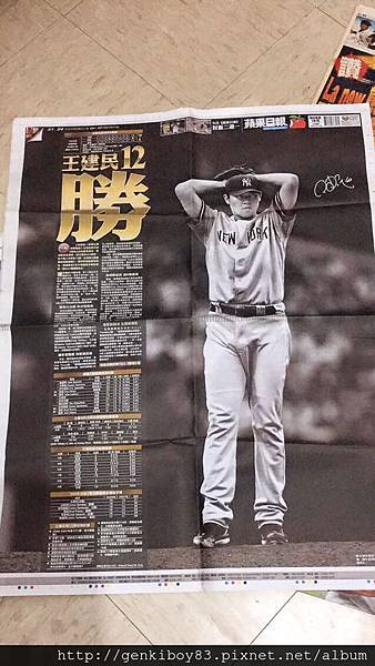 16勝的時候因為是對紅襪隊,所以特別值得開心,當年紅襪一直是老王的剋星之一。因為當時在當兵,請人買回來放在部隊之後怕被幹走,所以蓋了一堆官章在上面......當年蘋果日報的特刊超級搶手!