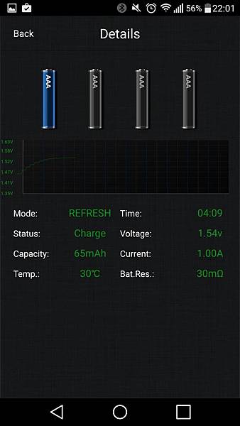 選擇好程序開始後按槽位紐可以看到電池狀態也能看到電池的充放電曲線