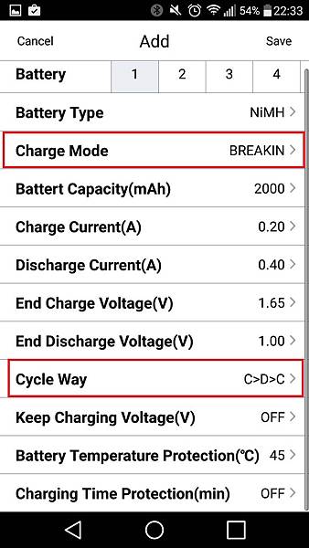 除了基本的充放外,上圖是選擇Break In活化模式的話可以調整 充-放-充 或是 放-充-放